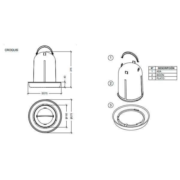 - Asa ergonómica: Facilita el transporte y permite colgar el bebedero si es necesario.