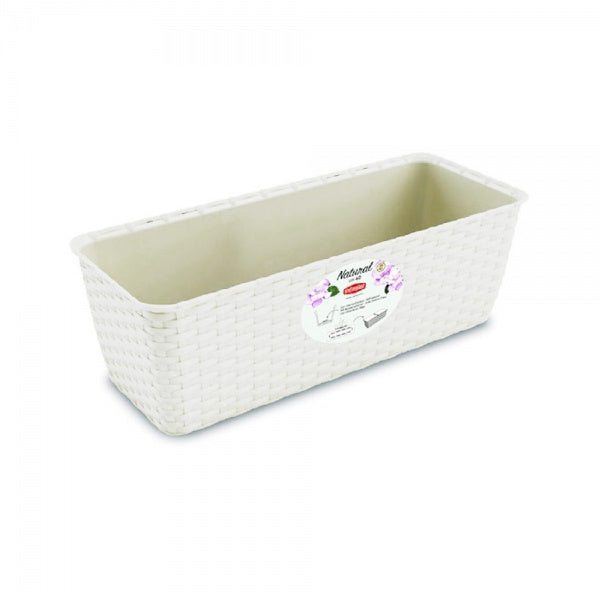 Material: Plástico PVC Para interior y exterior. Incluye reserva de agua Dimensiones: 40 x 16 x 13 centímetros.